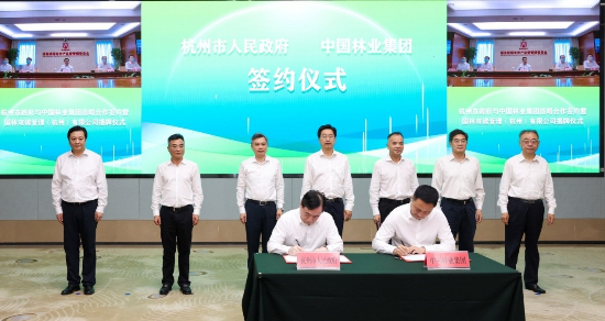 杭州市政府与中国林业集团战略合作签约暨双碳平台揭牌仪式6月10日下午举行。国务院国资委党委委员、副主任翁杰明,省委常委、常务副省长陈金彪,省委常委、市委书记刘捷,中国林业集团党委书记、董事长余红辉,中国国新控股有限责任公司董事长周渝波,市委副书记、市长刘忻,市领导朱华、胡伟,国务院国资委相关部门负责人出席。